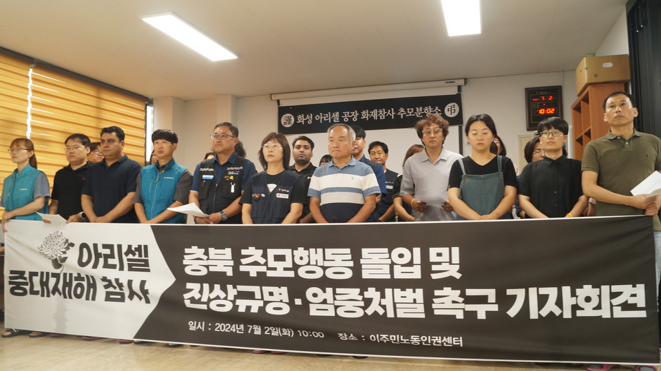 이들 단체는 같은 날 기자회견을 열고 아리셀 중대재해 참사의 철저한 진상규명과 처벌을 촉구하며, 지방정부와 노동부 차원에서의 이주민 노동자 안전 대책을 마련할 것을 요구했다.