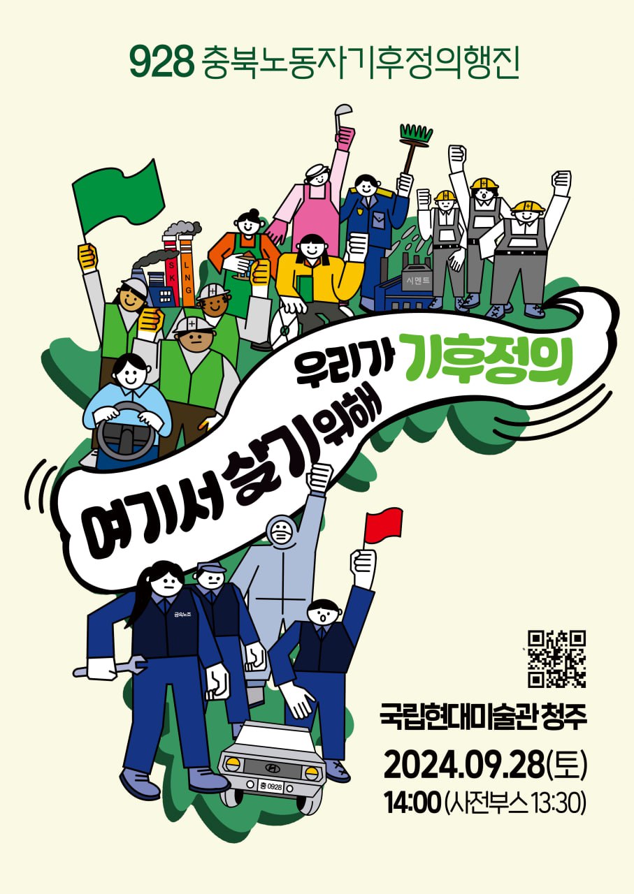 “여기에서 살기 위해, 우리가 기후정의” 928충북노동자기후정의행진 요구