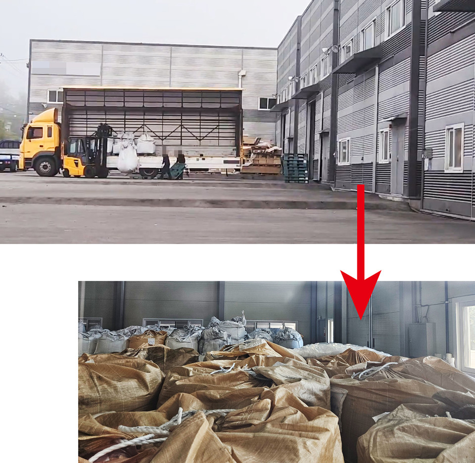 폐유독물질은 일명 ‘톤백’ 자루에 담긴 채 창고에 보관됐다. 폐유독물질은 폐전지 부산물로 코발트 등 중금속이 포함돼 있다.