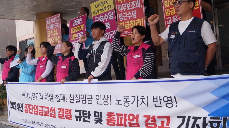 지난 3일 전국학교비정규직연대회의는 교육부와 전국 17개 시도교육청과의 집단 교섭이 결렬됨에 따라 오는 6일 전국 총파업에 나설 것이라고 밝혔다.