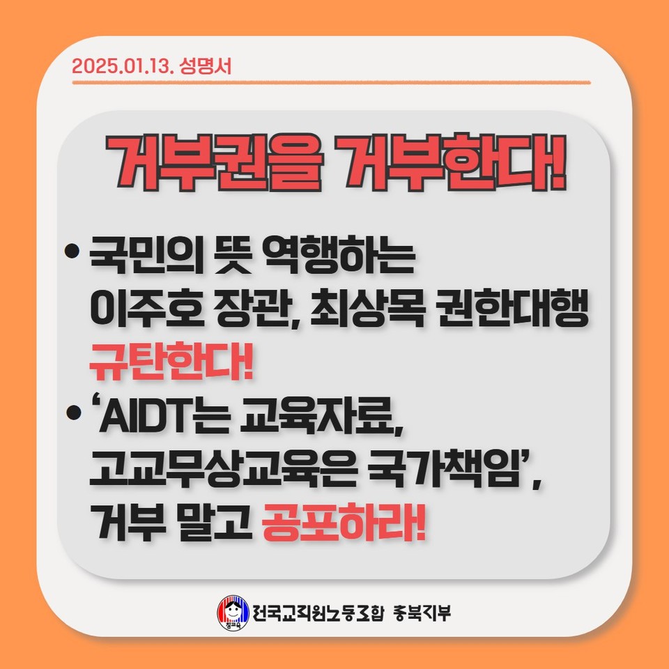 한편 최상목 권한대행의 거부권 행사와 관련, 정근식 서울시교육감 최교진 세종시교육감 등 일부 교육감과 교육·교원단체에서는 강하게 비판하고 있다.