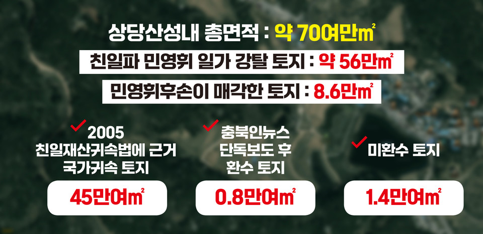 법이 제정되면서 청주상당산성에 소재한 민영휘 후손이 소유한 토지에 대한 국가귀속이 속도를 냈다.