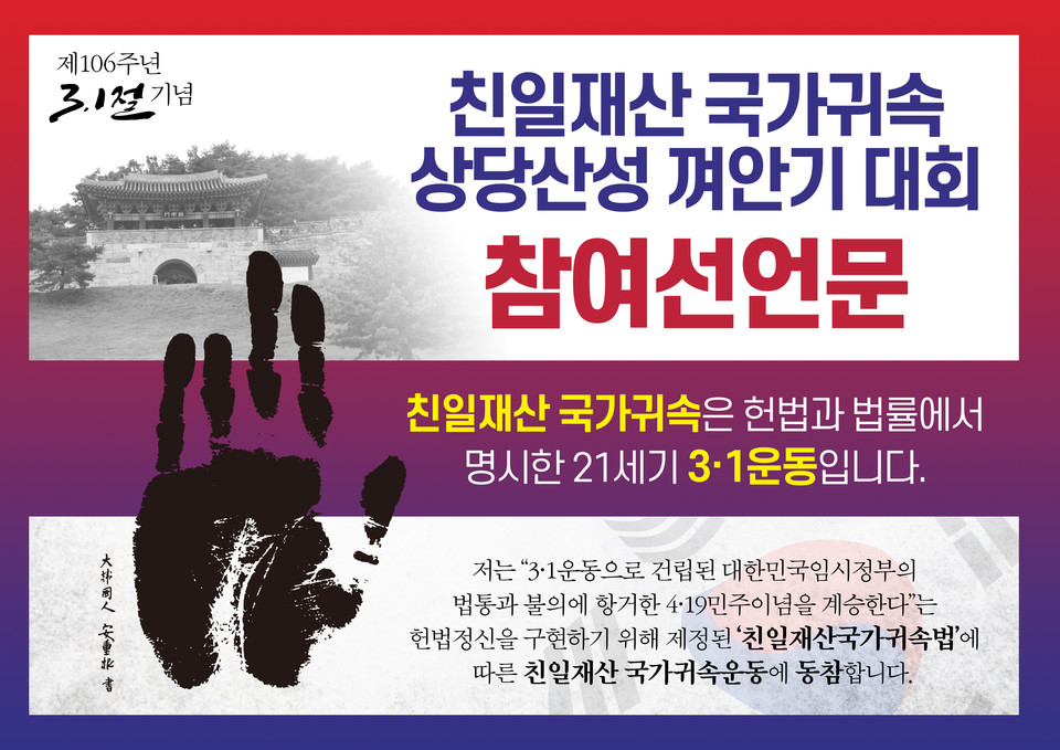행사명칭은 ‘제105주년 3‧1절 기념 친일재산 국가귀속 상당산성 껴안기대회’다.