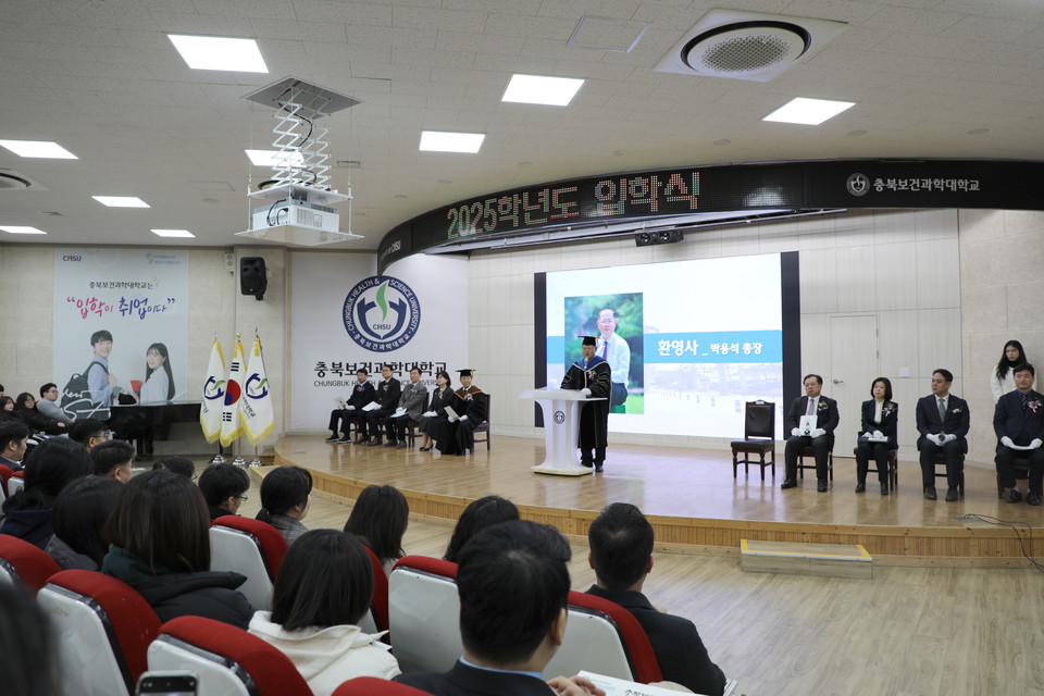 충북보건과학대가 19일 '2025학년도 신입생 입학식'을 개최했다.