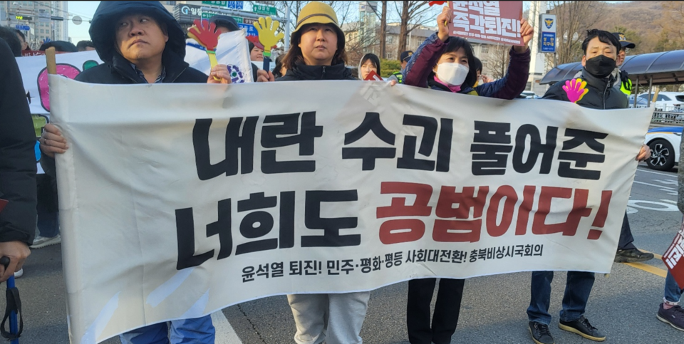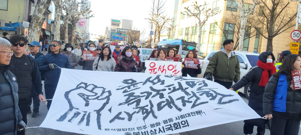 충북의 노동·시민·사회단체와 도민들이 강풍과 추운 날씨에도 윤석열 탄핵과 국민의힘 해체를 촉구하며 거리로 나섰다.