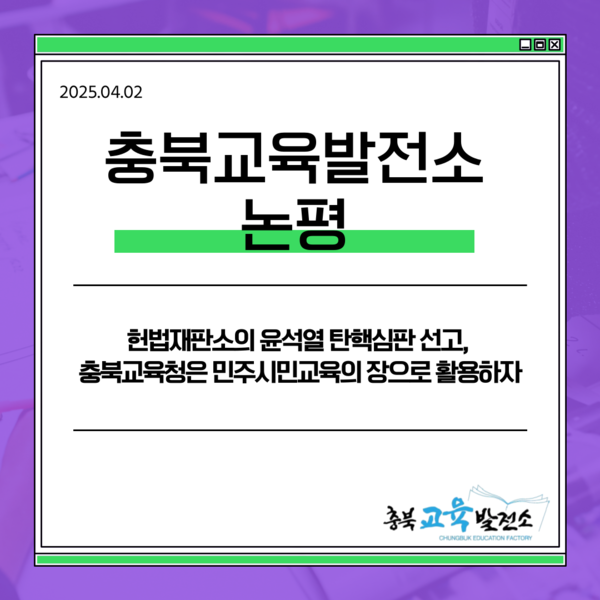 충북에서 오는 4월 4일 예정되어 있는 헌법재판소의 윤석열 탄핵 심판 선고를 민주시민교육의 장으로 활용하자는 의견이 나오고 있다.