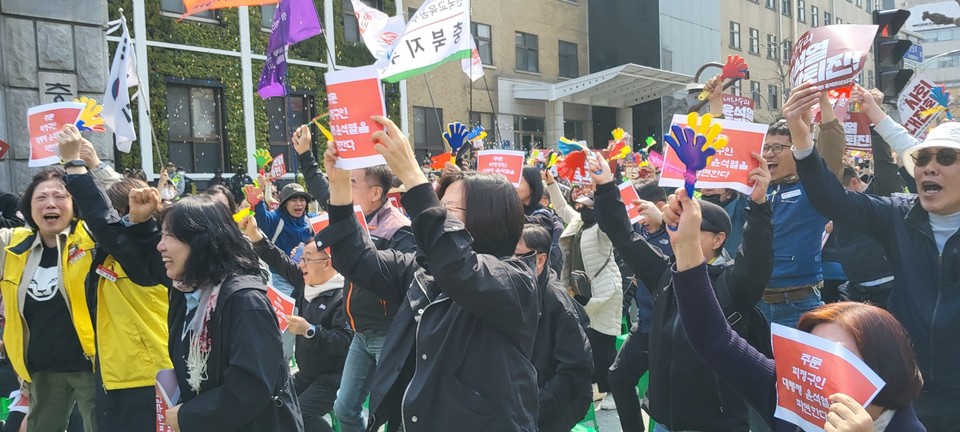 “내란수괴 윤석열을 넘어 새로운 세상으로 나가자”