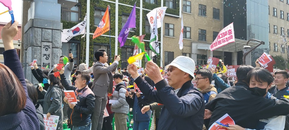 한편 비상시국회의는 이날 오후 6시 30분부터 7시 30분까지 도청 서문 앞에서 제41차 충북도민 시국대회를 연다. 파면 축하 영상 시청과 떡 자르기를 비롯해 홈플러스 청주성안점까지 행진을 진행한다.