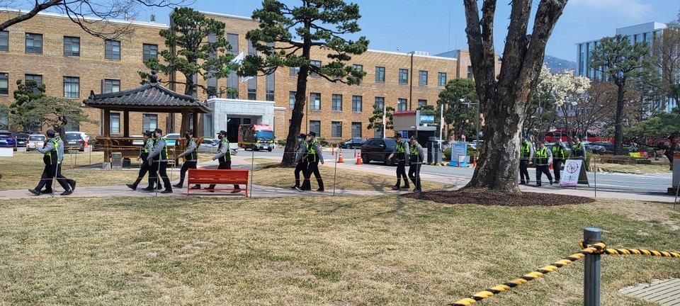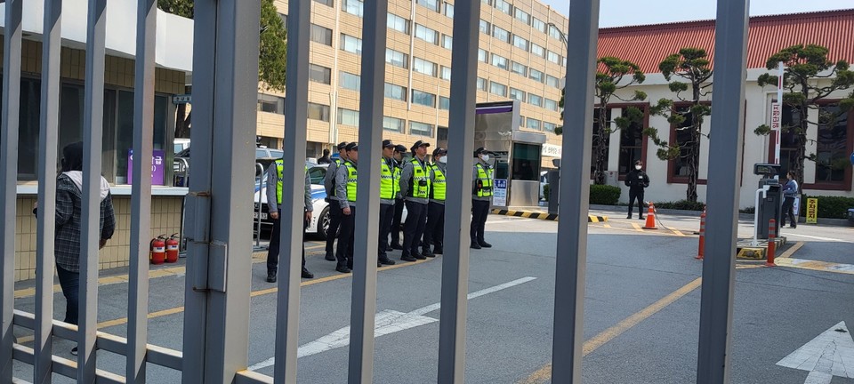이 시간 도청 본관 현관문은 폐쇄됐으며, 도청 내·외부에서는 경찰차, 구급차 등이 자리했다. 100여 명에 가까운 경찰들이 도청을 에워싸며 경비를 섰다.