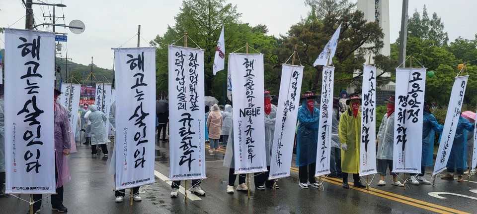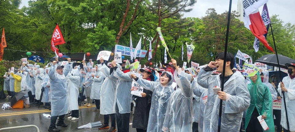 이들은 결의문에서 “윤석열을 파면시키고 맞이하는 세계 노동절이지만, 노동자의 생존과 존엄을 짓밟는 불평등 체제는 여전히 바뀌지 않았다”며 “우리는 모든 노동자의 생존권과 노동 3권을 쟁취하고 불평등을 넘어 노동 중심 체제 전환을 향해 힘차게 투쟁할 것을 선언한다”고 밝혔다.