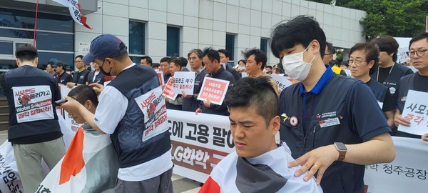 화섬노조 대전충북지부, 15일 기자회견 열고 삭발 단행