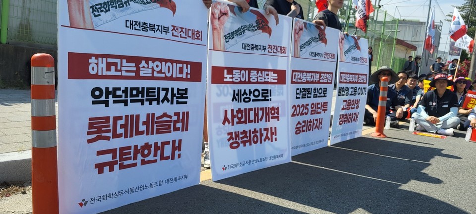 이영섭 화섬식품노조 대전충북지부장은 “노동조합의 기본적 임무인 임금 인상 투쟁을 위해 이 자리에 모였다”며 “노동자들이 단결하고 뭉치면 반드시 승리할 수 있다는 사실을 이어 나가기 위한 노력을 지속할 것”이라고 말했다.