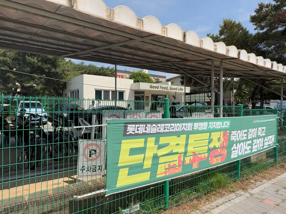 민주노총 전국화학섬유식품산업노동조합 대전충북지부는 26일 오후 롯데네슬레코리아 청주공장 정문 앞에서 임금단체협상 투쟁 전진대회를 열었다.
