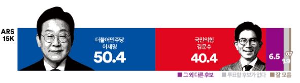 단일화 할경우 이재명 50.4%, 김문수 40.4%