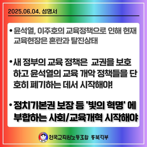 【이재명‧국민주권정부에 바란다】 전교조 충북지부