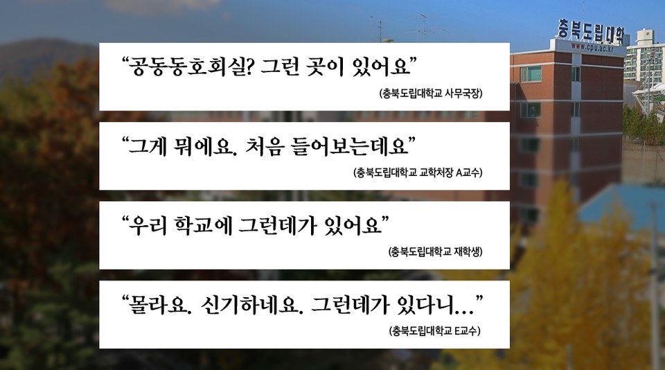 충북도립대 직원에 따르면 이곳은 지난 3월 국무조정실 감사 때 문제가 ‘공동동호회실’에 대해 추궁을 받자 이곳을 ‘공동동호회실’이라고 둘러댄 장소다.