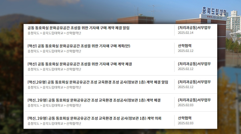 - 【충북도립대 세금도둑들12】후배 업체에 10일 사이 수의계약 2억 몰아줘
