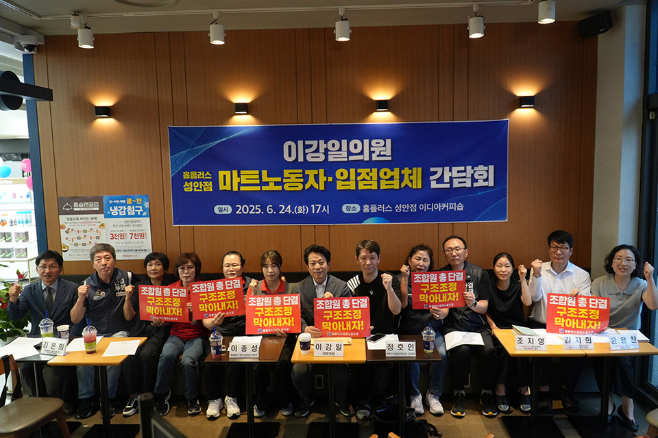 간담회를 마친 이강일 의원은 “그동안 MBK파트너스, 공정거래위원회 등을 상대로 지적해왔던 문제들을 오늘 다시금 확인했다”며 “MBK 청문회 추진을 포함한 국회 차원의 모든 역량을 동원하겠다. 또한 가장 좋은 해결책은 홈플러스 청주성안점의 운영이 다시 정상화되는 것이기 때문에, 해결방안을 마련하기 위해서 세부적인 부분들을 계속 파악하고 점주·직원 분들과 꾸준히 소통하겠다” 의지를 밝혔다.