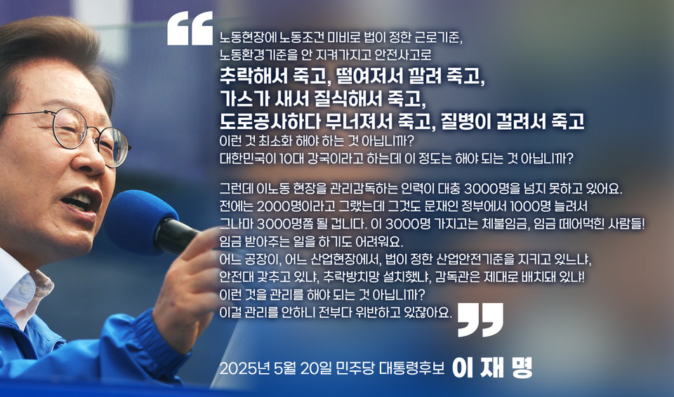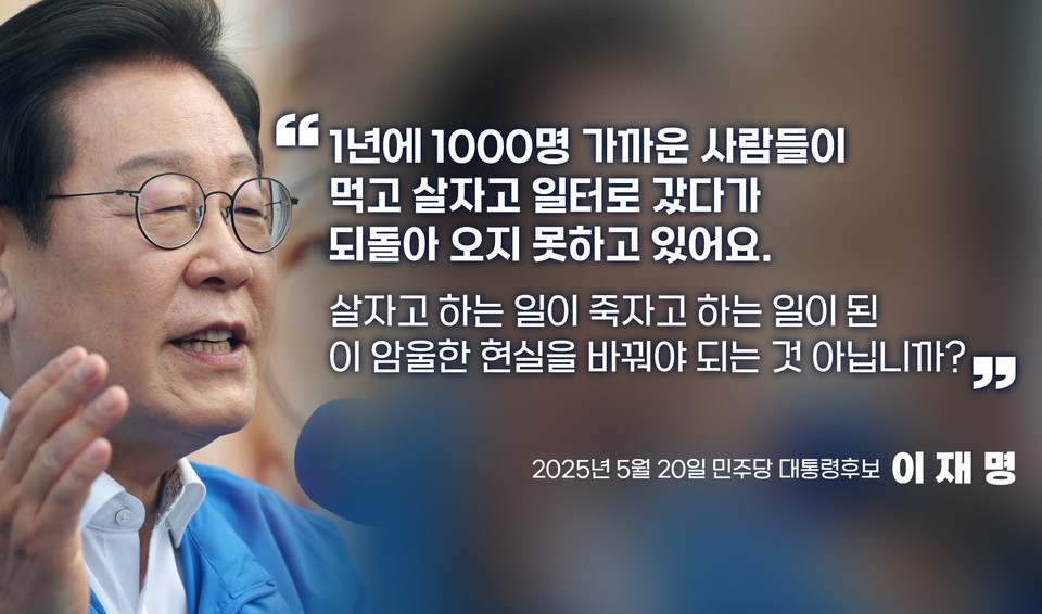 이재명 대통령이 언급한 대로 아침에 출근해서 저녁에 퇴근하지 못하는 노동자 수만 연간 1000여명이다. 대통령의 말 대로 “암울한 현실”이다.