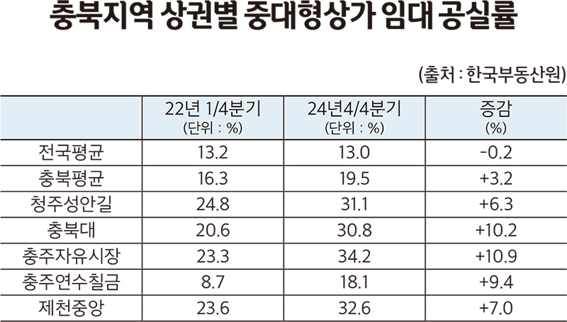 지난 해 4분기 전국 평균 상가공실류은 13%인데 반해 충북인평원 사옥이 있는 성안길의 경우 공실률이 31%에 달했다.