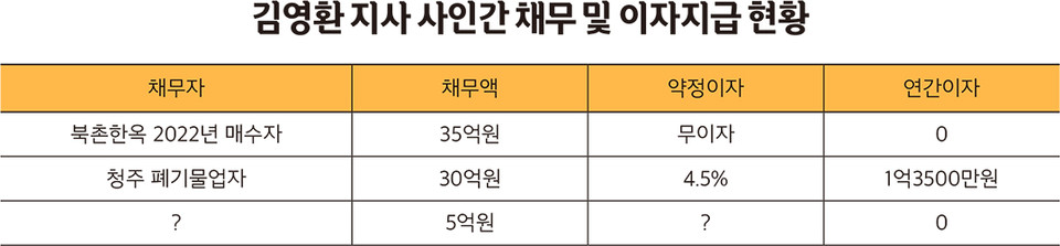 김 지사, 30억 채무 청주폐기물 업자에 연간 금리 4.5%