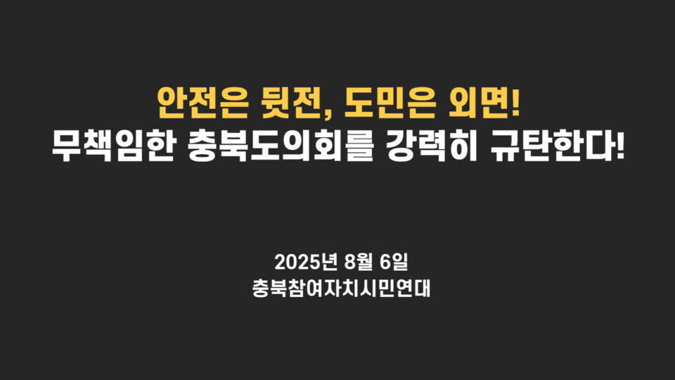 참여연대는 특히 개청식을 앞두고 무리하게 입주를 서두르는 이유에 의문을 제기하며, “충북도의회의 위상은 건물이 아니라 도민에 대한 책임감과 견제 기능을 충실히 할 때 비로소 세워지는 것”이라고 강조했다.