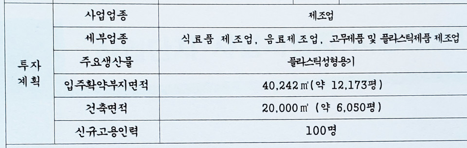 그러나 S사가 진천군에 제출한 자료에는 확장하는 곳의 주요 생산물이 ‘플라스틱 성형 용기’라고 씌여 있다.