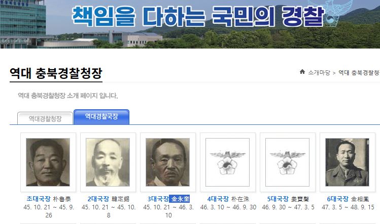 조선총독부 경찰(한정석, 김영규)출신을 버젓히 대한민국 충북지방경찰청의 뿌리라고 소개하는 셈이다.