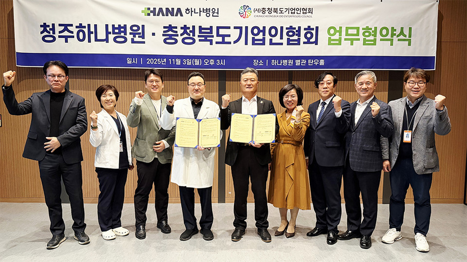 양 기관은 이번 협약을 통해 충북기업인협회 회원사 임직원과 가족들에게 신속하고 체계적인 의료서비스를 제공하고, 협회는 회원사들이 청주 하나병원을 통해 건강을 지킬 수 있도록 적극 권유하기로 뜻을 모았다.