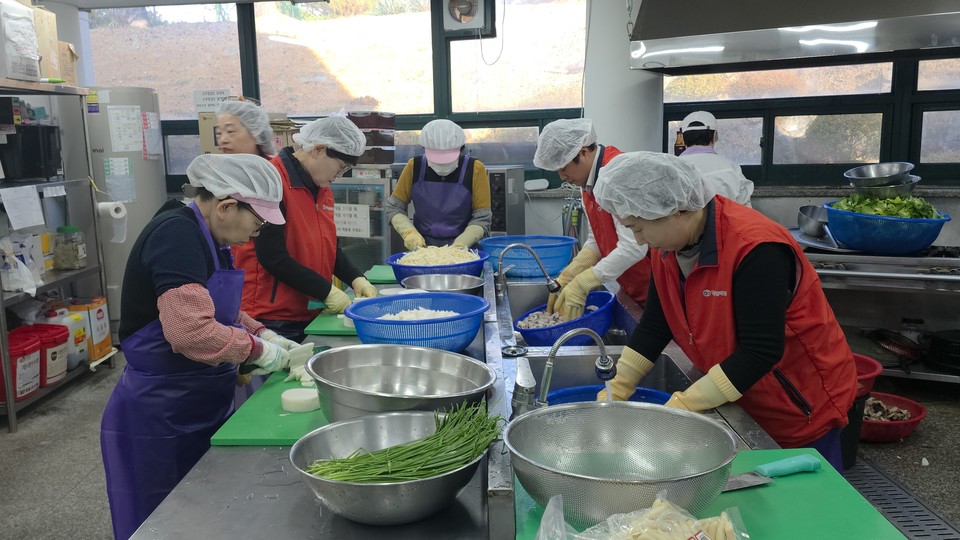 한국건강관리협회(건협) 충북·세종지부가 18일 청주 가경노인복지관에서 어르신들을 위한 점심식사 조리 및 배식 봉사활동을 진행했다.