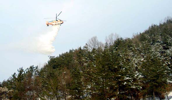 충북 보은군이 5.7㎝의 눈이 내린 날 대형 헬기까지 동원한 산불진화훈련을 벌여 큰 훈련효과를 얻지도 못한채 주민들로부터 빈축만 샀다. 군은 27일 오후 산불 진화용 대형헬기(KA-32T) 1대, 산불진화 특장차 2대, 등짐펌프 등 장비와 읍·면 담당공무원, 산불감시원 등 140여명의 인력을 동원해 보은읍 삼년산성산림욕장에서 실제 산불상황을 재연한 진화훈련을 벌였으나 보은지역의 경우 지난 25일 오후부터 26일 오전까지 5.7㎝의 적설량을 보인 상황이었다.