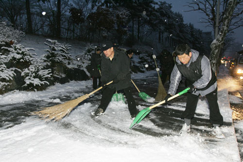 구랍 31일에는 전 직원이 평소보다 1~5시간 일찍 출근해 제설작업에 나섰다. 남 시장은 이날 “수고했다는 말밖에 할 말이 없다”며 준비한 송년사를 읽지 않고 6분만에 종무식을 끝내 화제가 됐다.