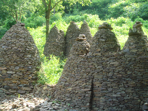 고 교수는 21년 전 이곳 괴산군 청천면 도원리 49번지 일원에 터를 잡았다. 그리고 21년 만에 고 교수는 속리산 국립공원 자락 피거산(375m)을 한국 최대의 돌탑이 자리잡은 곳으로 변신시킨다. 서울에서 조형대학장까지 역임했지만, 이곳을 가꾸기 위해 일부러 조치원 캠퍼스로 자리를 옮겼다. 그리고 지난 6월 정년퇴직했다. 그는 강산이 두 번 변할 때 300여개의 돌탑을 이곳에 심었다.