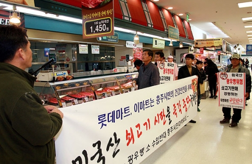충북 광우병 소 수입반대 충주시민대책회의가 2일 롯데마트 충주점 정육판매코너 앞에서 미국산 쇠고기 판매 중단을 요구하고 있다. 뉴시스 cbi@cbinews.co.kr 다른기사 보기 저작권자 © 충북인뉴스 무단전재 및 재배포 금지 댓글삭제 삭제한 댓글은 다시 복구할 수 없습니다. 그래도 삭제하시겠습니까? 비밀번호 닫기 기사 댓글 0 댓글 접기 댓글 내용입력 비회원 로그인 이름 비밀번호 댓글 내용입력 댓글쓰기 계정을 선택하시면 로그인·계정인증을 통해 댓글을 남기실 수 있습니다. 회원 로그인 비회원 글쓰기 이름 비밀번호 자동등록방지 로그인 옵션 창닫기