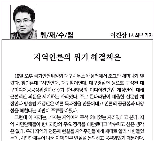 * 글쓴이는 대구지역 언론개혁시민단체 참언론대구시민연대 사무국장입니다. (www.chammal.org) |