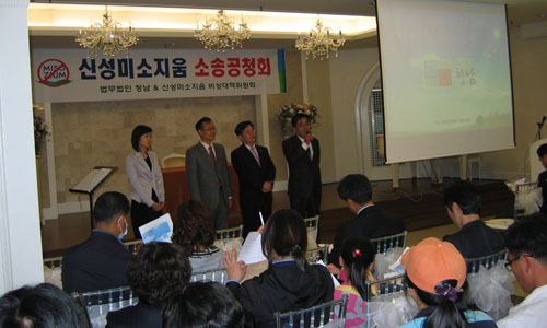 신성미소지움 비상대책위원회(위원장 김준기)는 지난 23일 오후 7시 용암동 매직프라자에서 소송인단 모집을 위한 공청회를 갖고 27일 현재 223명이 소송에 참여한 것으로 나타났다. 김준기 위원장은 “시공사의 부도로 분양계약자들은 경제적·정신적 피해를 입었다. 하지만 대한주택보증이 계약자들에게 보증이행하는 부분은 계약금과 1차 중도금 뿐이다. 계약자 가운데는 미리 2차 중도금을 지불한 경우도 있고, 시공사와 직접 계약하고 입주자 모집공고에도 명시된 발코니 확장비용도 환급금에 포함되지 않았다. 아파트 내벽 도색 비용은 물론 지금의 현실이 신성건설·윤우디엔씨의 귀책사유가 분명한 만큼 분양대금의 10%에 해당하는 위약금을 소송을 통해 돌려받을 계획”이라고 밝혔다.