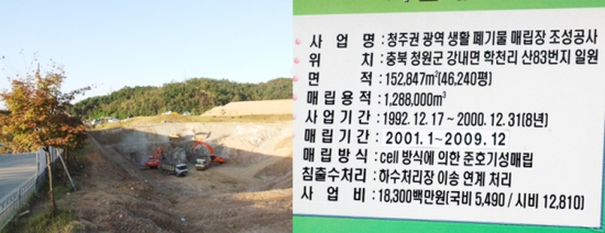 시는 올해로 사용기한이 만료되는 청원군 강내면 학천리 산 83의 광역매립장에 45억 원의 예산을 들여 15만2000㎥의 매립용량을 추가로 늘리는 증설공사를 지난 8월부터 추진해 왔다. 이는 2013년까지 4년 동안 모두 16만6000루배를 추가로 매립 할 수 있는 시설로 알려졌다.