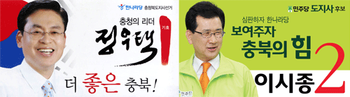 그 중 도지사 선거캠프는 가장 화려하다. 정우택 한나라당 예비후보와 이시종 민주당 예비후보는 각