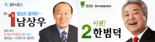 청주시장 선거도 남·한 두 명의 후보 싸움으로 일찌감치 구도가 잡힌데다 여러 면에서 대비돼 흥미