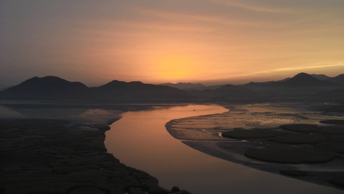 이번 탐방에서는 그윽한 노을빛이나 흑두루미, 혹부리오리는 보지 못했지만, 탐방에 나섰던 이들 모두가 쌀쌀해지는 저녁 바람에도 자리를 뜨지 못하고 하늘, 물, 갈대숲사이를 서성이며 갈대숲에 터를 잡은 철새 울음소리와 바람결에 흩날리는 갈대소리가 오케스트라연주처럼 어우러짐에 감동했다. 수로에 떠있는 쪽배 한 척에는 저녁순찰을 나왔는지 왜가리 한 마리가 앉아 망을 본다. 배는 왜가리 무게를 싣고 빙빙 맴을 돌고 해는 뉘엿뉘엿 산 너머로 빛을 거둬간다.