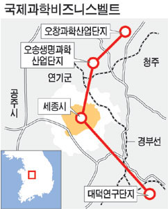 이명박 대통령은 지난 2007년 11월 대선 후보로 대전을 방문한 자리에서 충청권에 국제과학비즈니스벨트를 설치하겠다고 약속했다. 이 벨트는 세종시와 대덕연구단지, 오송생명과학산업단지, 오창과학산업단지 등을 하나의 광역경제권으로 묶어 한국판 실리콘밸리를 만들겠다는 것이 핵심이다. 벨트 중심에는 아시아 기초과학연구소가 자리잡고 산하에는 신물질개발센터, 미래첨단장비개발센터, 사이언스비즈니스네트워크 등 각종 기관들이 들어선다는 것.