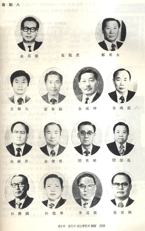선뜻 투자를 결심하고 발기인으로 나선 인물들은 당시 충북을 대표하는 기업가들이었다. 15인의 발기인을 살펴보면 충북은행 설립을 주도한 김우현 당시 청주상의 회장을 비롯해 김종호 한국도자기 대표, 김준철 충북석유 대표(청석학원 이사장), 민철기 신흥제분 대표, 이도영 남한제사 대표, 장인환 삼화물산 대표 등 지역 경제인들과 박용학 대농그룹 회장, 김성곤 국회의원(쌍용양회 회장), 정주영 현대그룹 회장 등도 참여했다.
