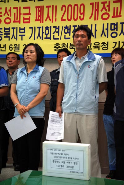 이 밖에도 "현장 시범운영, 교원수급 계획 부재, 교과서 준비 부족, 다양한 여론수렴 절차 등도 없이 막무가내로 시행중인 2009년 개정 교육과정을 즉각 중단해야 한다"고 주장했다. 전교조 충북지부 권미령 지부장은 "교사 개인을 넘어 학교별 차등성과급까지 나오고 있다"며 "우리 아이가 다니는 학교가 등급이 메겨져 있다면 말이 되는가, 학생·학부모·교사가 공감하는 자신감을 키워주는 정책으로 바퀴어야 한다"고 꼬집었다.