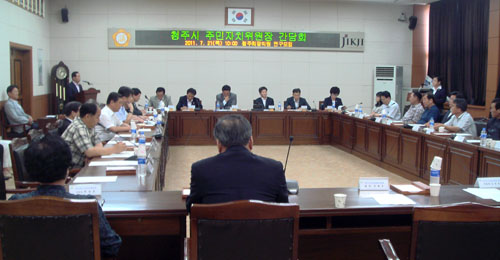 그런데 주민자치위원장협의회를 비롯한 일부 시의원들이 이러한 주민자치 조직을 다시 되돌아보고 문제를 해결하기 위해 나섰다. 지난 4월부터 청주시의회 희망의원 연구모임이 만들어져 주민자치활성화 방안을 연구하기 시작했다. 이용상(민주당), 이대성(한나라당), 김창수(민주당), 서지한(민주당), 이관우(한나라당), 서명희(한나라당), 김성중(민주당) 등 당파를 초월해 논의에 참여하고 있고 여러 차례 토론회를 거치면서 완성도를 높였다.