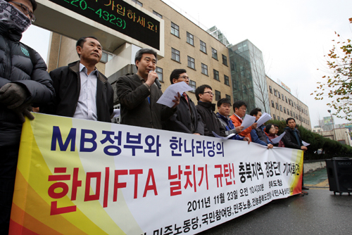 이시종 충북도 지사는 이에 대해 "한·미 FTA로 인해 상대적 피해를 보게 될 것으로 예상되는 과수·축산 등 농업분야와 농민, 중소상인에 대한 보호대책이 선행되는 것이 가중 중요하다고 판단되며 별도의 종합 대책 수립을 정부에 촉구한다"고 강조했다.