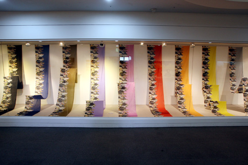 지금 청주 한국공예관에서는 ‘섬유, 자유를 꿈꾸다’(5월 16일~6월 3일)라는 이름으로 송 대표의 개인전이 열리고 있다. 한국공예관에서는 올해 충북작가 초대전의 첫 번째 주인공으로 송 대표를 세웠다. 여기서는 ‘직지’를 넘어선 다른 작품들을 볼 수 있다. 송 대표는 “창업한지 10년 되면 ‘까마종’만의 작품을 만들어 패턴화하고, 순수작품으로 개인전을 열겠다는 목표를 세웠다. 올해 그것을 달성했다”고 말했다. ‘버버리’만의 고유한 무늬가 있듯이 ‘까마종’만의 그것을 개발하겠다는 의지는 새로운 것을 창조해냈다. 한국의 민화를 현대화한 무늬에 옻염색과 자개를 가미한 그 것이다.