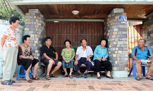 인근 손두원(74) 씨 댁 대문 앞에는 동네 주민들이 모여 이야기를 나누고 있었다. 한 아주머니는 “오후 3시쯤 되면 대문 앞에 그늘이 생기기 시작한다. 그때가 우리 모이는 시간”이라며 즐겁게 웃었다. 어디서 가져왔는지 손 씨의 대문 앞에는 낡은 4인용 의자가 자리 잡고 있었다. 이들은 매일 이곳에서 모여 담소를 나눈다.