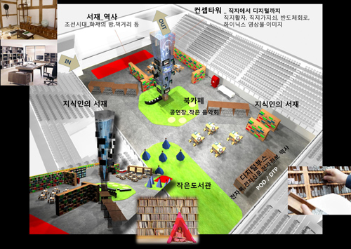 지식인의 서재 코너에서는 충북과 인연이 있는 문화예술가 10여명의 서재를 선보인다. 뉴욕에서 활동중인 설치미술가 강익중 씨와 한글을 주제로 옷을 짓는 패션디자이너 이상봉 씨 등이 예정돼 있다. 그리고 역사속으로 코너에서는 조선시대 학자의 방을 볼 수 있다. 매일매일 이벤트에서는 인문학캠프, 지식나눔콘서트, 북카페를 선보인다.
