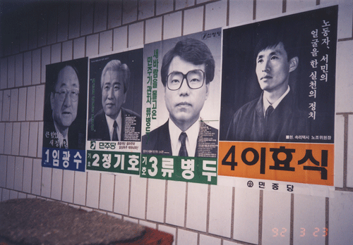 당시의 선거 분위기는 어땠을까. “모당의 후보는 100억원을 넘게 썼다”는 말이 돌 정도였고, 어떤 유권자는 동일한 후보에게 음식점에서 세 번을 대접받았다는 소문이 공공연하게 나돌았다. 지금으로서는 상상할 수도 없는 금권선거가 판을 치던 시대였다. 그런데 가난한 택시노동자인 그의 선거홍보물은 A4용지 1장 앞뒷면에 흑백으로 인쇄된 것이었다. 지금 보면 조잡하기 그지없다.