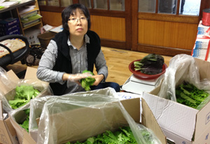 이렇게 토론하는 것이 끝이 아닙니다. 실제로 교류가 일상적으로 이뤄지기 시작했습니다. 상류지역 농민들이 맑은 물을 보전하며 농사지은 친환경농산물이 물길 따라 아래로 흘러가는 것이었지요. 그 정점에는 2008년 1월11일 상류지역 친환경농업하는 농부들이 모여 만든 대청호환경농민연대가 있습니다. 지난 25일 대전시 동구 인동에 있는 대청호 환경농민연대 사무실에는 무주, 금산, 옥천, 보은, 영동 등 상류지역 친환경 농민들이 농사지은 농산물들이 속속들이 도착합니다.